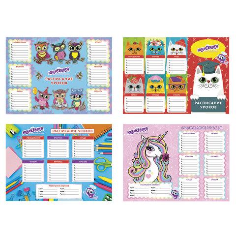 Расписание уроков ЮНЛАНДИЯ разработано специально для детей школьного возраста. Оно идеально подходит для планирования и подготовки заданий в домашних условиях. Поставляется в четырех вариантах дизайна (без возможности выбора).