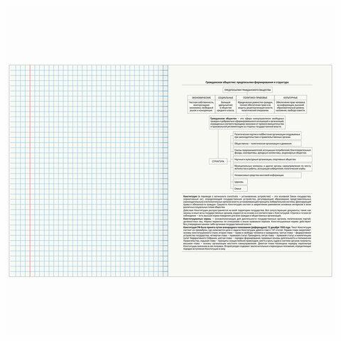Тетрадь по обществознанию формата А5 (165х202 мм) содержит 48 листов, изготовленных из высококачественной офсетной бумаги плотностью 60 г/