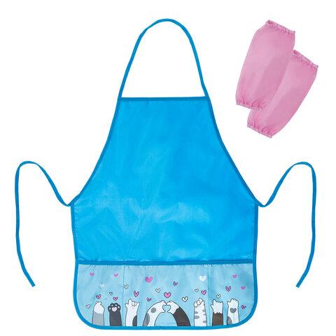 Фартук с нарукавниками BRAUBERG — незаменимая вещь для защиты одежды на уроках труда и занятиях творчеством. Фартук изготовлен из водоотталкивающего материала, предназначен для многоразового использования.