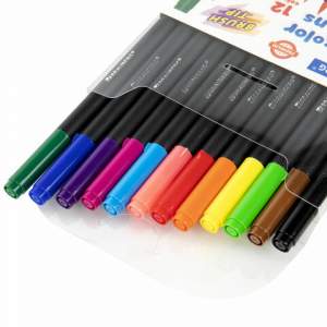 В наборе 12 круглых фломастеров из пластика длиной 145 мм и диаметром 10 мм.