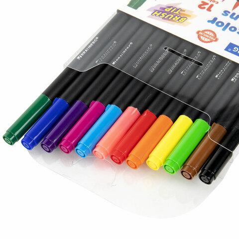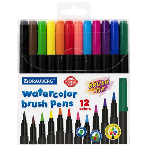 Фломастеры BRAUBERG PREMIUM — набор из 12 круглых фломастеров с наконечником-кистью, смываемыми чернилами на водной основе в ПВХ-упаковке для рисования.