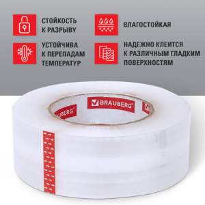 Упаковочная клейкая лента BRAUBERG ORIGINAL активно используется в торговле, промышленности, быту и подходит для оперативной упаковки с помощью диспенсера или вручную. Отличается высокой адгезией клея (слипанием с поверхностью) и стойкостью к разрыву.