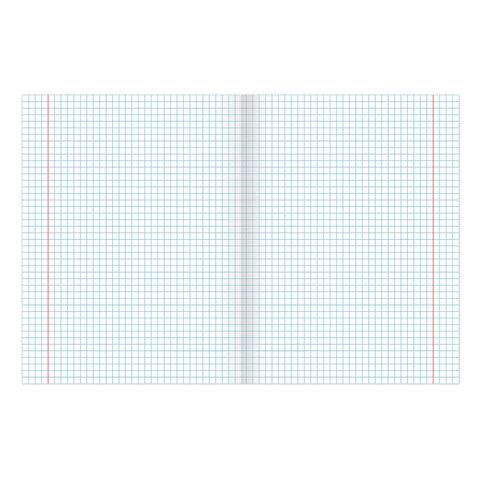 Внутренний блок содержит 48 листов офсетной бумаги плотностью 65 г/м2. Обложка изготовлена из мелованного картона. Линовка — клетка с полями. Скрепка надежно скрепляет листы между собой. Белизна — 100%. Формат А5.