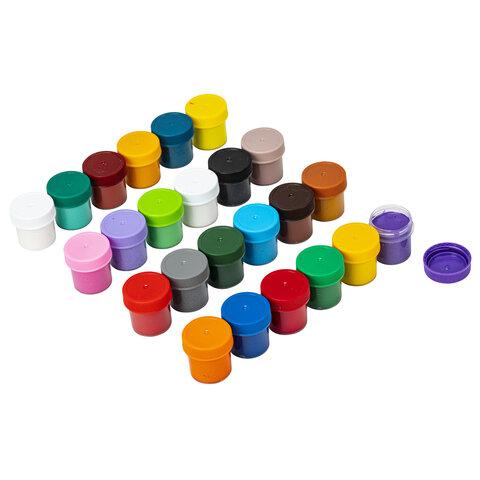 В наборе 24 ярких и насыщенных цвета: белый (2 шт.), красный, черный, синий, желтый, зеленый, коричневый, оранжевый, фиолетовый, светло-зеленый, голубой, розовый, красно-коричневый, охра, кармин, аквамарин, темно-желтый, желто-лимонный, темно-зеленый, морская волна, какао, сирень, серый.