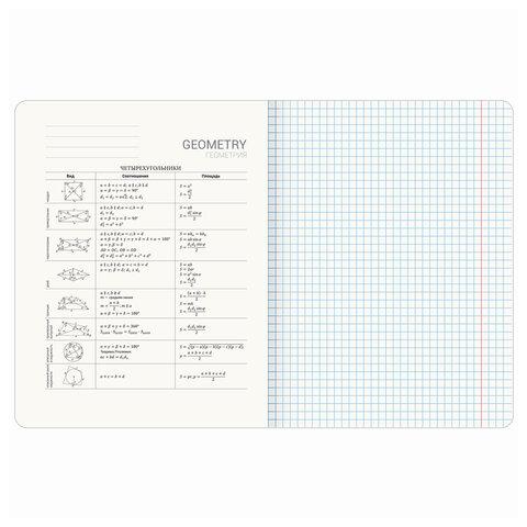 Тетрадь по геометрии формата А5 (165х202 мм) содержит 48 листов, изготовленных из высококачественной офсетной бумаги 100% белизны, плотностью 60 г/