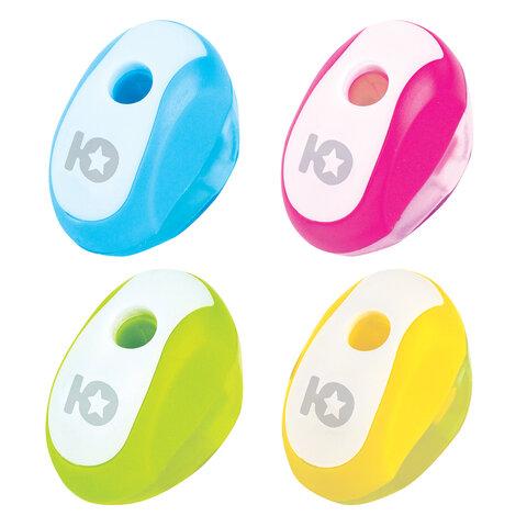 Корпус выполнен из пластика. Острое лезвие обеспечивает высококачественную и точную заточку. Карандаш до 8 мм затачивается легко и аккуратно, а опилки остаются в специальном контейнере. Компактные размеры (39х24х42 мм) позволят поместить точилку в пенал, а благодаря интересной форме она не затеряется на парте или столе среди других принадлежностей.