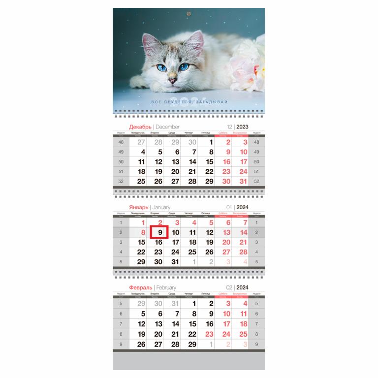 Календарь состоит из трёх блоков, которые надёжно скреплены тремя гребнями. Изделие оснащено одним пикколо и бегунком.