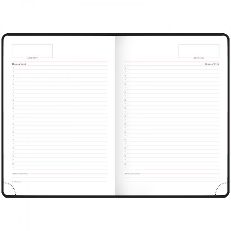 Перфорированные уголки и закладка-ляссе обеспечат комфорт и удобство при использовании ежедневника. Внутри на форзацах содержатся географические карты России и мира и справочные материалы. Недатированный ежедневник подходит под персонализацию.