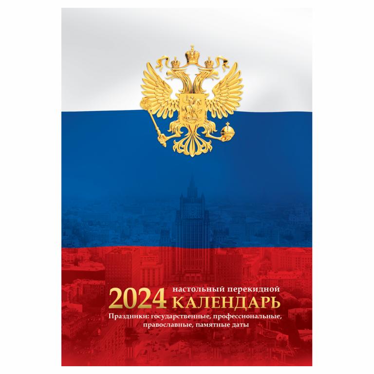 Календарь настольный перекидной OfficeSpace «Флаг» на 2024 год — незаменимая вещь в жизни делового человека и отличный помощник для офиса. Размер вертикального календаря — 100*140 мм. Календарный блок из 160 листов изготовлен из газетной бумаги плотностью 45 г/м2 с печатью в две краски в четырёх цветах. Верхняя и нижняя подложки сделаны из картона плотностью 120 г/м2. Нижняя подложка имеет цветность в одну краску, верхняя — полноцветная. Расстояние между внутренними краями отверстия — 4 см. На календаре изображены триколор и герб России. Современному человеку необходимо систематизировать свой день, назначать встречи, быть пунктуальным. Настольный перекидной календарь поможет не забыть о важных событиях жизни: днях рождения, значимых круглых датах, праздниках. Календарь упакован в термоусадочную плёнку.
