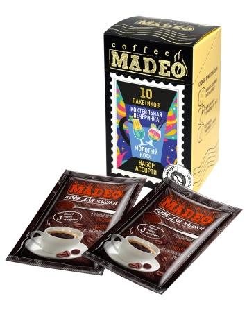 Набор из 10 порционных-пакетиков-саше — кофе с ароматами любимых алкогольных напитков. В составе: Ирландский крем, Бейлиз, Вишня в коньяке, Джек любит ром и Амаретто.