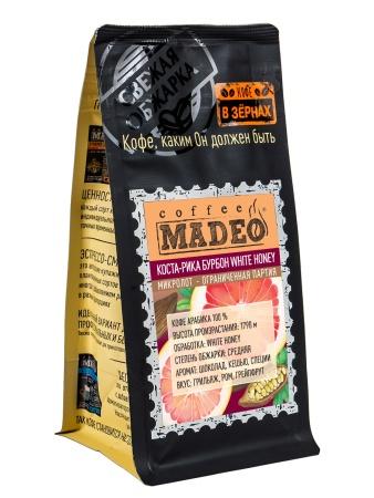 Редкий сорт кофе в медовой обработке white honey. В чашке — напиток с карамельными оттенками грильяжа, ноткой грейпфрута и томным ромовым послевкусием. Кофе с богатым ароматом шоколада, специй и орешков кешью.