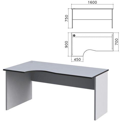 Стол письменный эргономичный Монолит (ш1600*г900*в750 мм), левый, цвет серый, СМ7.11