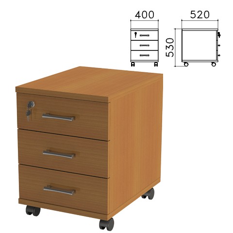 Тумба подкатная Монолит (ш400*г520*в530 мм), 3 ящика, замок, цвет орех, ТМ25.3