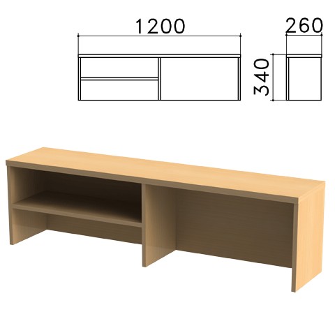 Надстройка для стола письменного Монолит (ш1200*г260*в340 мм), 1 полка, цвет бук, НМ37.1