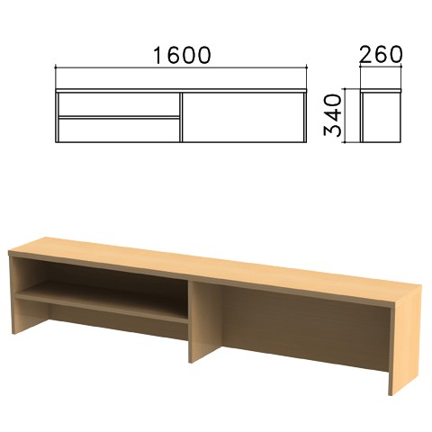 Надстройка для стола письменного Монолит (ш1600*г260*в340 мм), 1 полка, цвет бук, НМ39.1