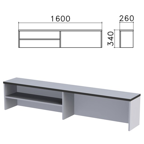 Надстройка для стола письменного Монолит (ш1600*г260*в340 мм), 1 полка,цвет серый,НМ39.11