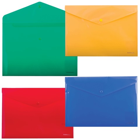 Папка-конверт А4 из плотного непрозрачного пластика с диагональной текстурой, который надолго сохраняет папку аккуратной и увеличивает срок ее службы. Закрывается на защелку-кнопку. Скрывает документы от посторонних глаз.