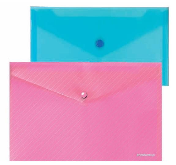 Папка-конверт из плотного прозрачного пластика. Закрывается на защелку-кнопку. Идеальное средство для транспортировки документов.