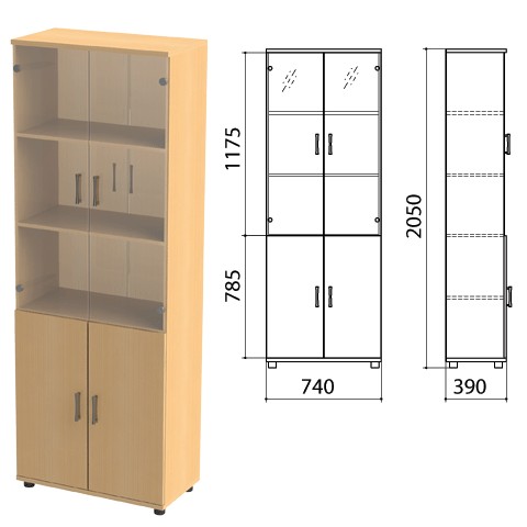 Шкаф закрытый со стеклом Монолит, 740х390х2050мм, цвет бук (КОМПЛЕКТ)