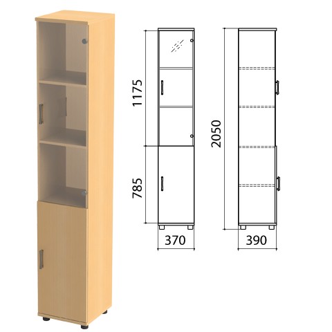 Шкаф закрытый со стеклом Монолит, 370х390х2050мм, цвет бук (КОМПЛЕКТ)