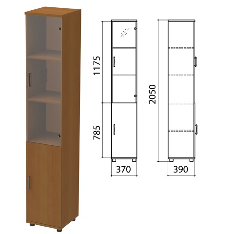Шкаф закрытый со стеклом Монолит, 370х390х2050мм, цвет орех (КОМПЛЕКТ)