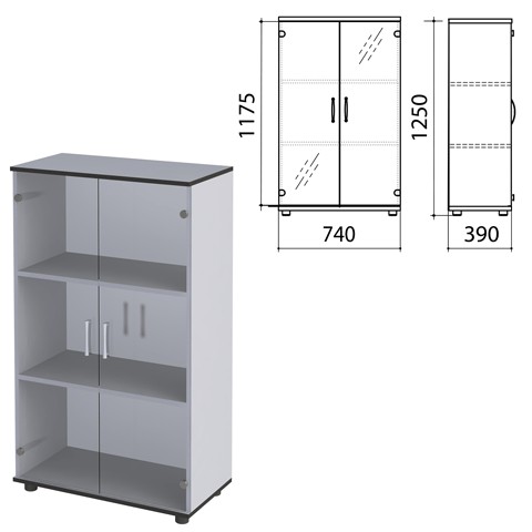 Шкаф закрытый со стеклом Монолит, 740х390х1250мм, цвет серый (КОМПЛЕКТ)