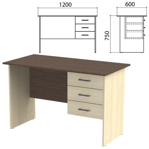 Стол письменный Канц, 1200х600х750 мм, тумба 3 ящика, цвет венге/дуб молочный (КОМПЛЕКТ)