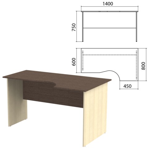 Стол письменный эргономичный Канц, 1400х800х750 мм, правый, цвет венге/дуб молочный (КОМПЛЕКТ)