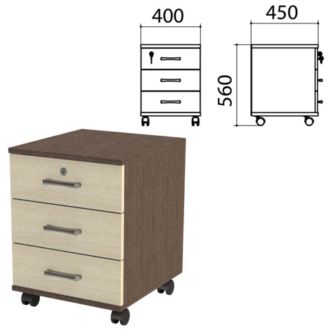 Тумба подкатная Канц, 400х450х560 мм, 3 ящика, замок, цвет венге/дуб молочный (КОМПЛЕКТ)