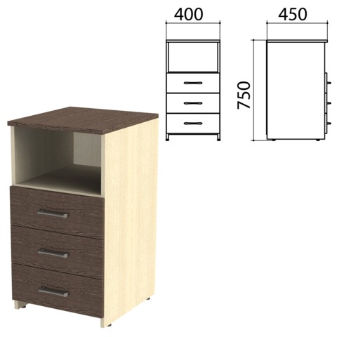 Тумба приставная Канц, 400х450х750 мм, 3 ящика, полка, цвет дуб молочный/венге (КОМПЛЕКТ)