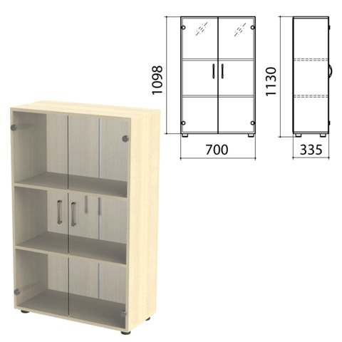 Шкаф закрытый со стеклом Канц, 700х335х1130 мм, цвет дуб молочный (КОМПЛЕКТ)