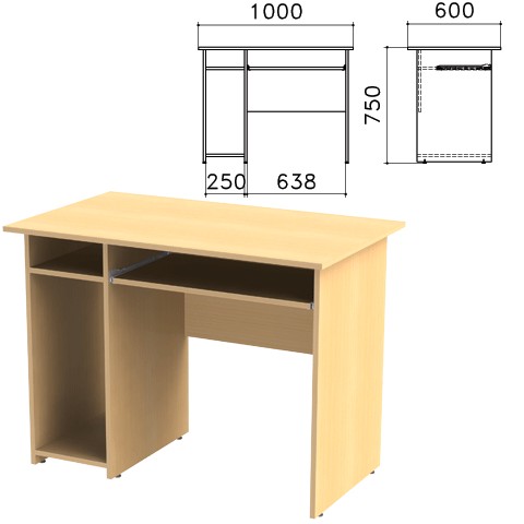 Стол компьютерный Канц (ш1000*г600*в750 мм), с тумбой, цвет бук, СК24.10