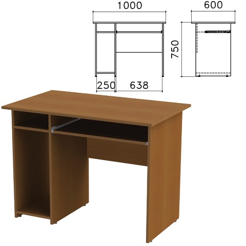 Стол компьютерный Канц (ш1000*г600*в750 мм), с тумбой, цвет орех, СК24.9