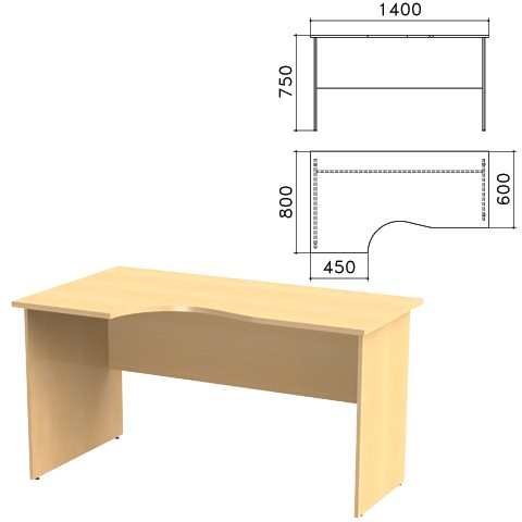 Стол письменный эргономичный Канц (ш1400*г800*в750 мм), левый, цвет бук, СК36.10
