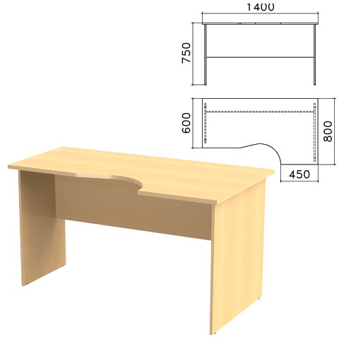 Стол письменный эргономичный Канц (ш1400*г800*в750 мм), правый, цвет бук, СК30.10