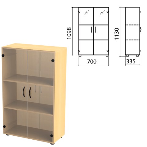 Шкаф закрытый со стеклом Канц, 700х335х1130мм, цвет бук (КОМПЛЕКТ)