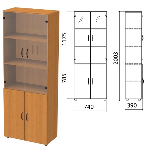Шкаф закрытый со стеклом Фея, 740х390х2000мм, цвет орех милан (КОМПЛЕКТ)