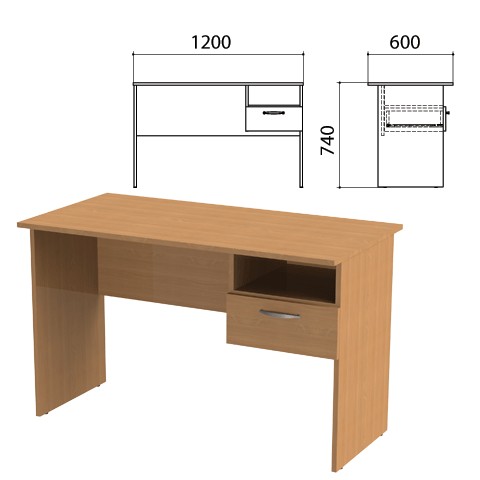Стол письменный с навесной тумбой Эко, 1200х600х740мм, цвет бук бавария (КОМПЛЕКТ)