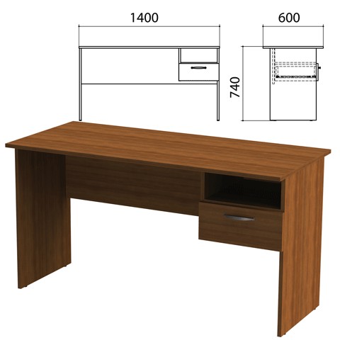 Стол письменный с навесной тумбой Эко, 1400х600х740мм, цвет орех (КОМПЛЕКТ)