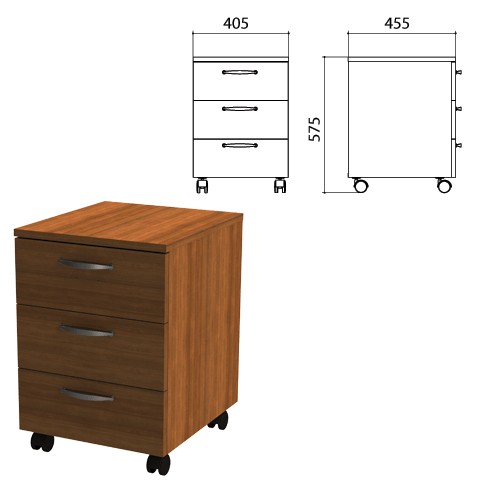 Тумба подкатная Эко (ш405*г455*в575 мм), 3 ящика, орех 19, 400992, ш/к 48609