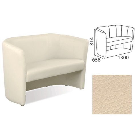 Диван двухместный Club Duo (ш1300*г658*в814мм), c подлокотниками, кожзам, бежевый V18, ш/к 34164