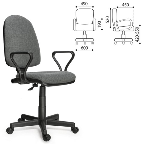 Кресло оператора Престиж с подлокотниками, серое В-3