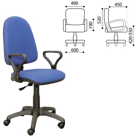 Кресло оператора Престиж с подлокотниками, черно-синее В-12