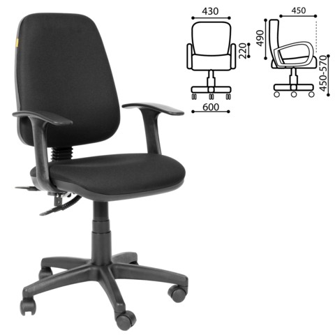 Кресло оператора СН 661 с подлокотниками, черное 15-21, ш/к 48162