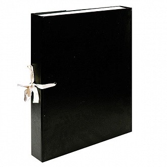 Короб формата А4 из твердого прессованного картона с бумвиниловым покрытием. На корешке короба имеется цветной стикер для маркировки. Завязки фиксируют короб в закрытом состоянии.