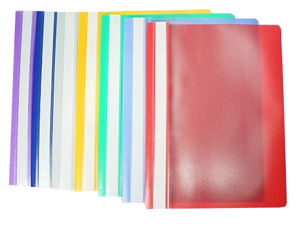 Классический мягкий пластиковый скоросшиватель. Предельно простой механизм подшивки: металлические усики и пластиковая планка для надежной фиксации документов. Снабжен прозрачным верхним листом. Для идентификации имеет сменный бумажный корешок.
